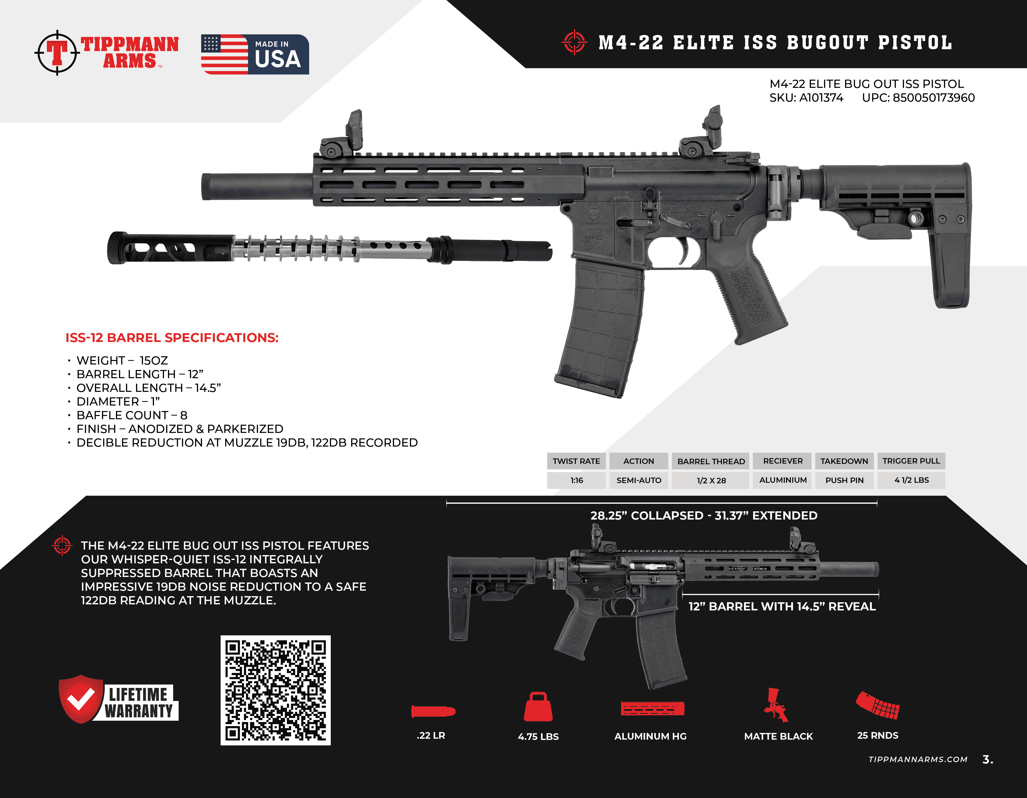 Tippmann Arms M4-22 ELITE BUG OUT ISS Integrally Suppressed Pistol